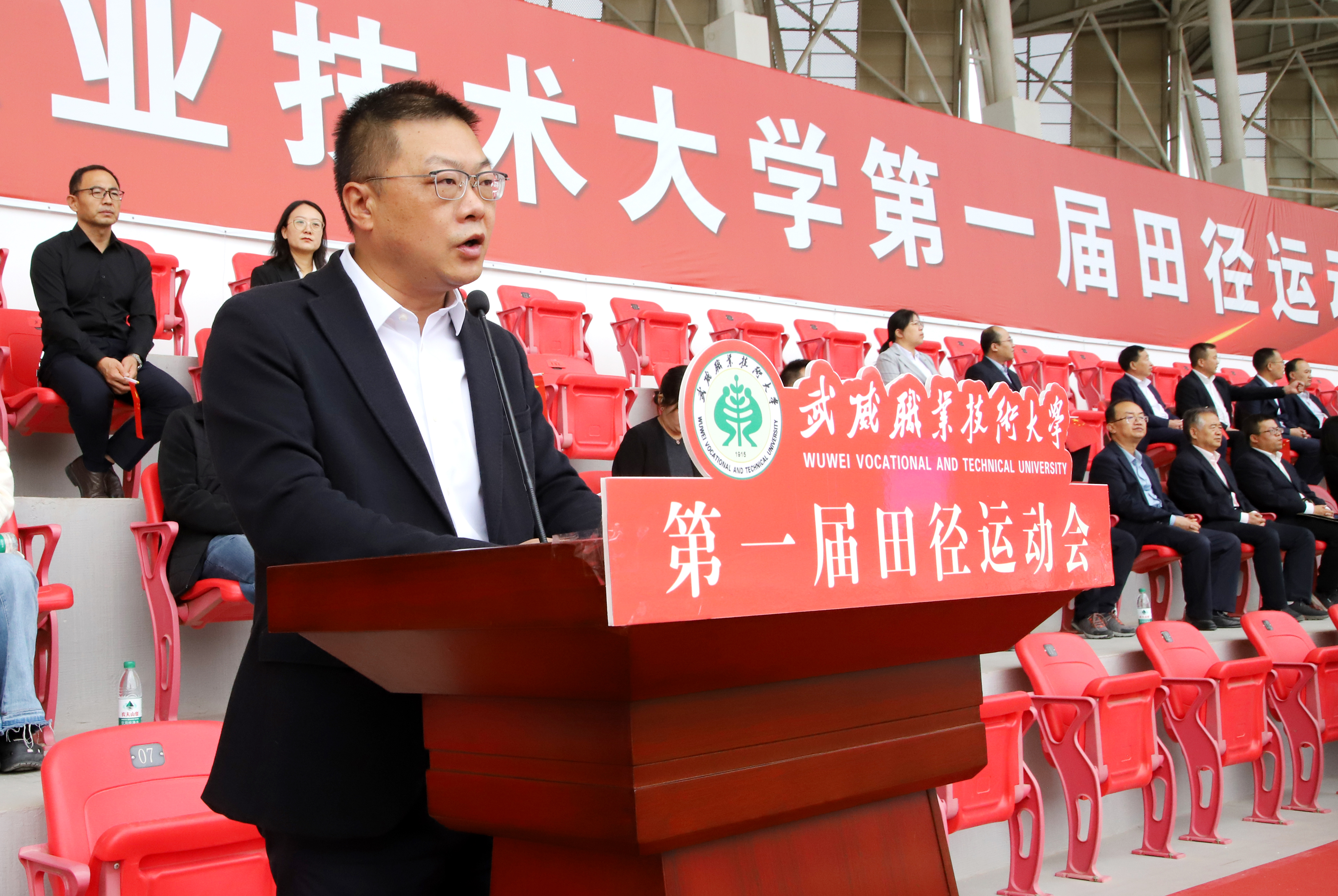 王宏宣布武威職業(yè)技術(shù)大學(xué)第一屆田徑運(yùn)動(dòng)會(huì)開(kāi)幕。
