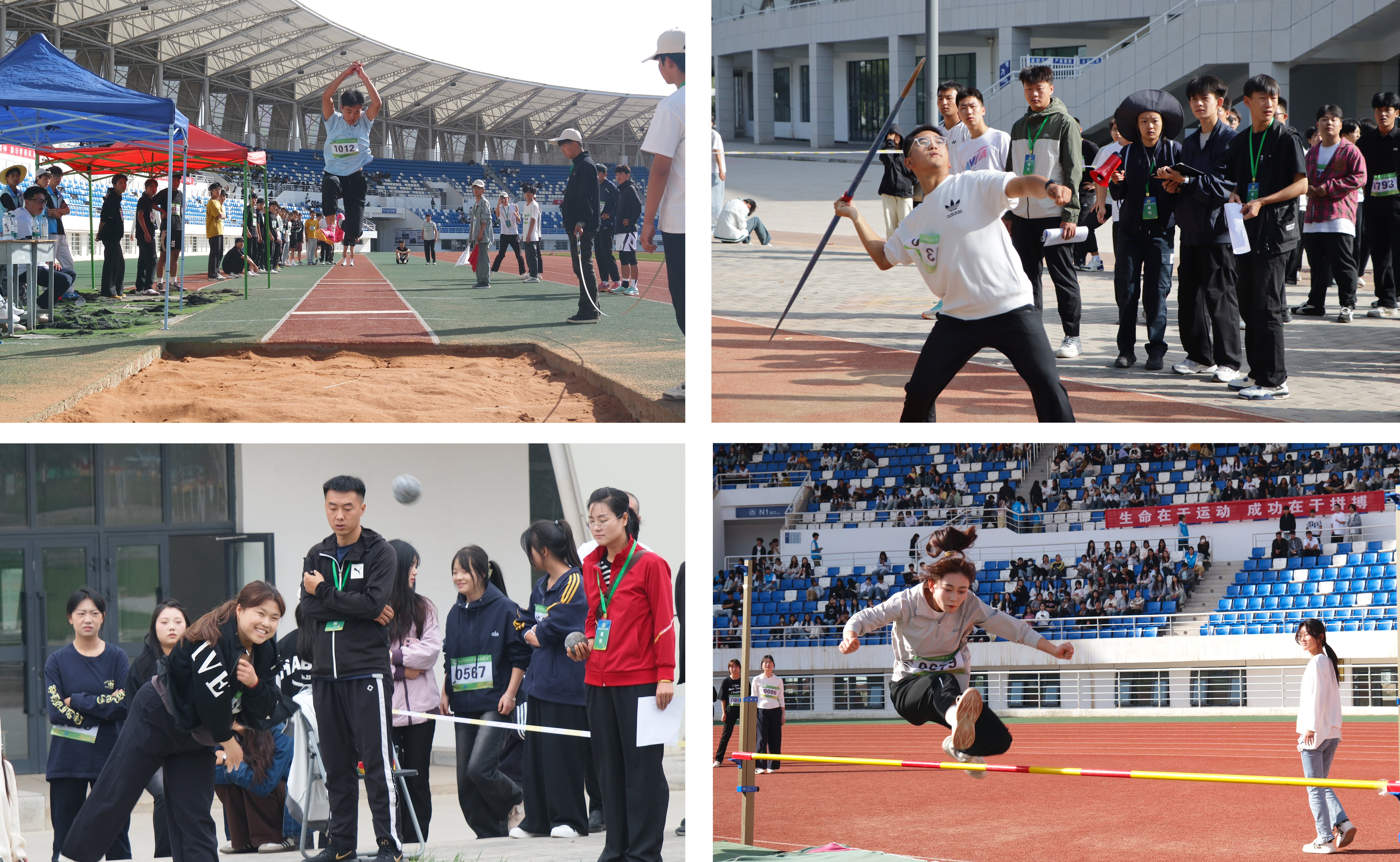 比賽場(chǎng)上,運(yùn)動(dòng)員們奮勇拼搏、超越自我。觀眾席上,同學(xué)們用熱情的掌聲、歡呼聲向運(yùn)動(dòng)員加油助威。