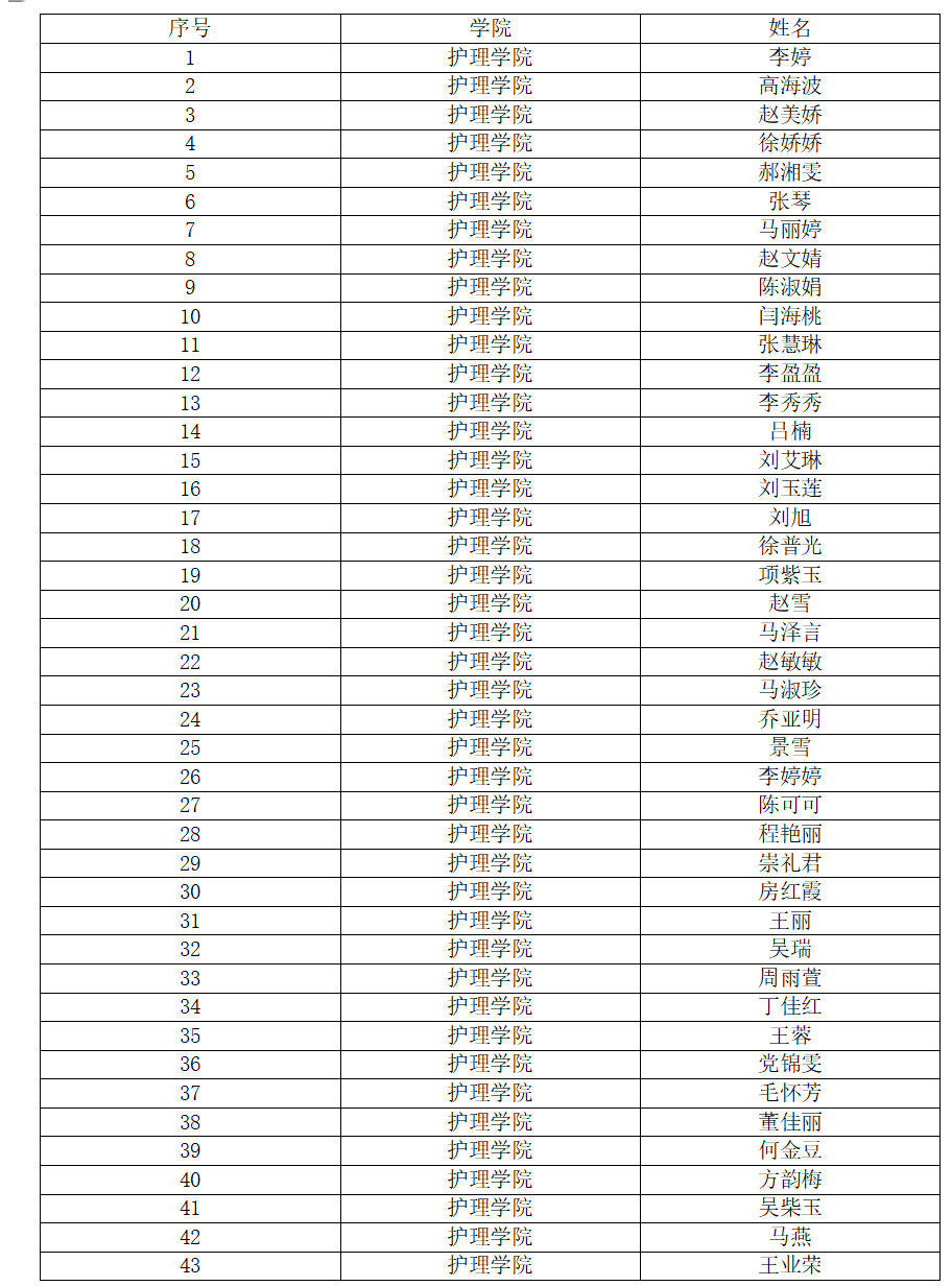 護理學(xué)院關(guān)于2025年國家助學(xué)金獲評人選的公示