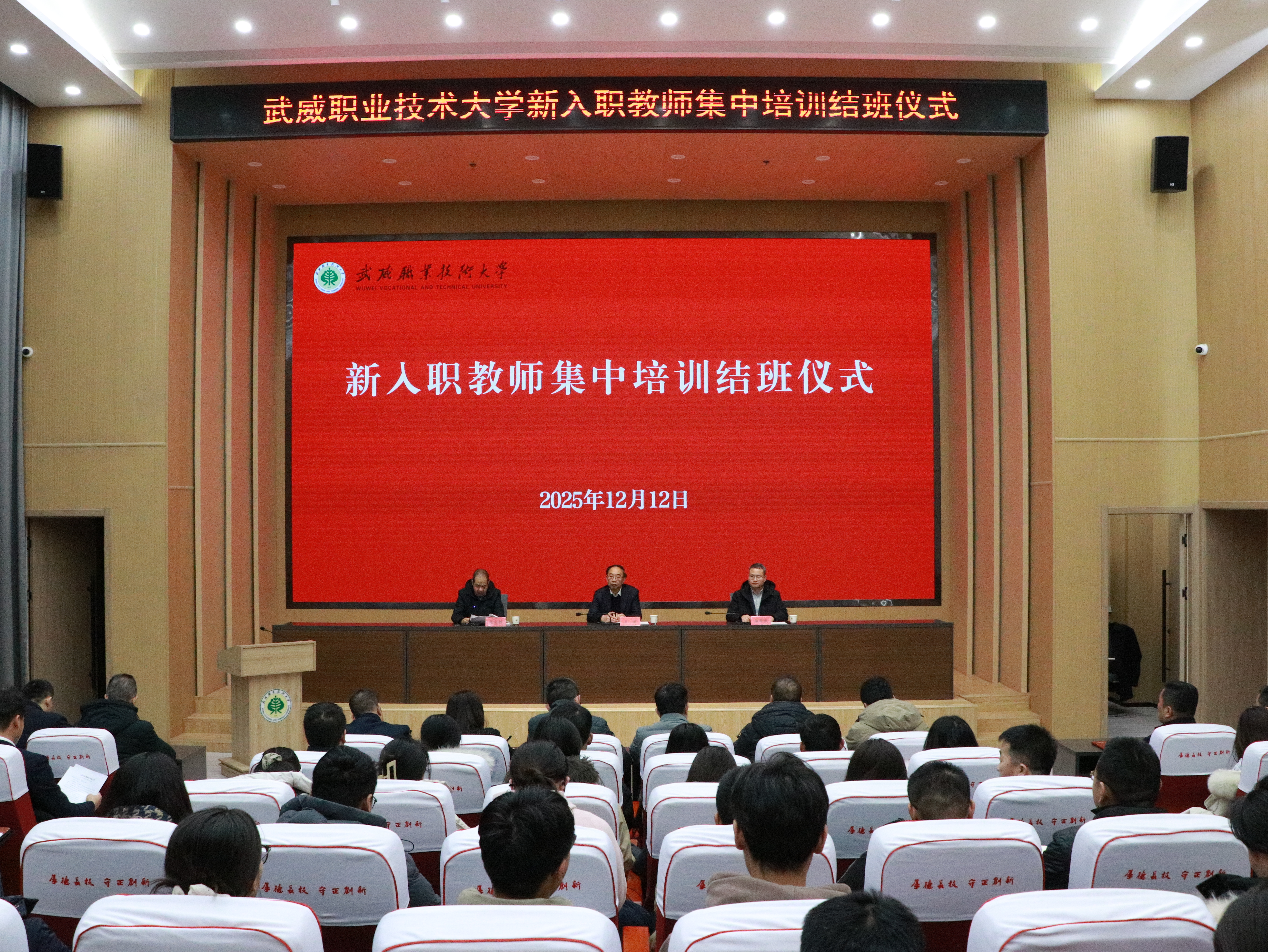 12月12日,學校在能源科技樓學術(shù)報告廳舉行新入職教師集中培訓結(jié)班儀式。黨委書記王宏,黨委委員、副校長伍國強,相關(guān)部門及各學院(部)負責人及93名近三年新入職教師共百余人參加。黨委副書記翟存祥主持儀式。